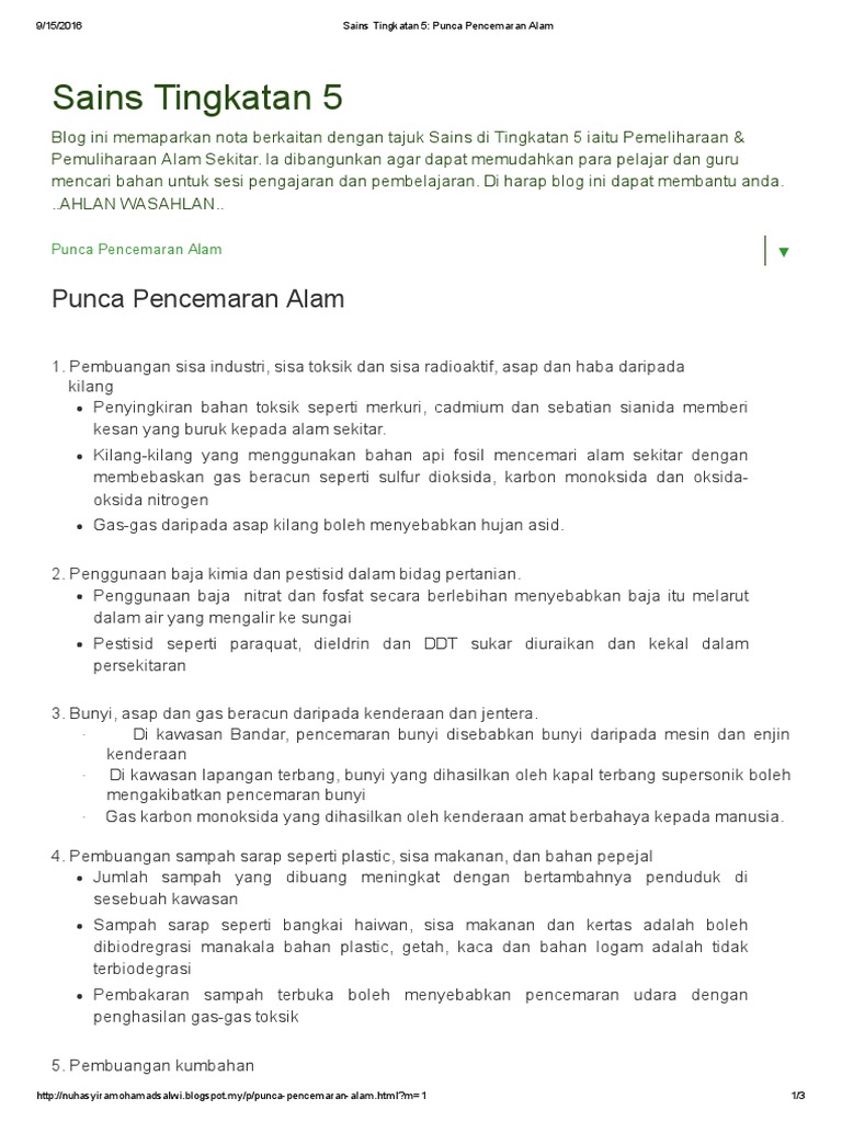 Sains Tingkatan 5 Punca Pencemaran Alam Pdf